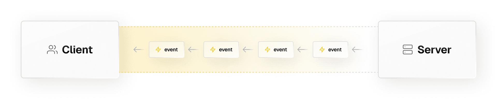 Whereas web streams close the HTTP connection once all the data has been sent, Server-Sent Events use a long-lived HTTP connection to ensure the server can send more events once they’re available. SSEs are popular for applications requiring real-time data, including AI providers such as OpenAI.
