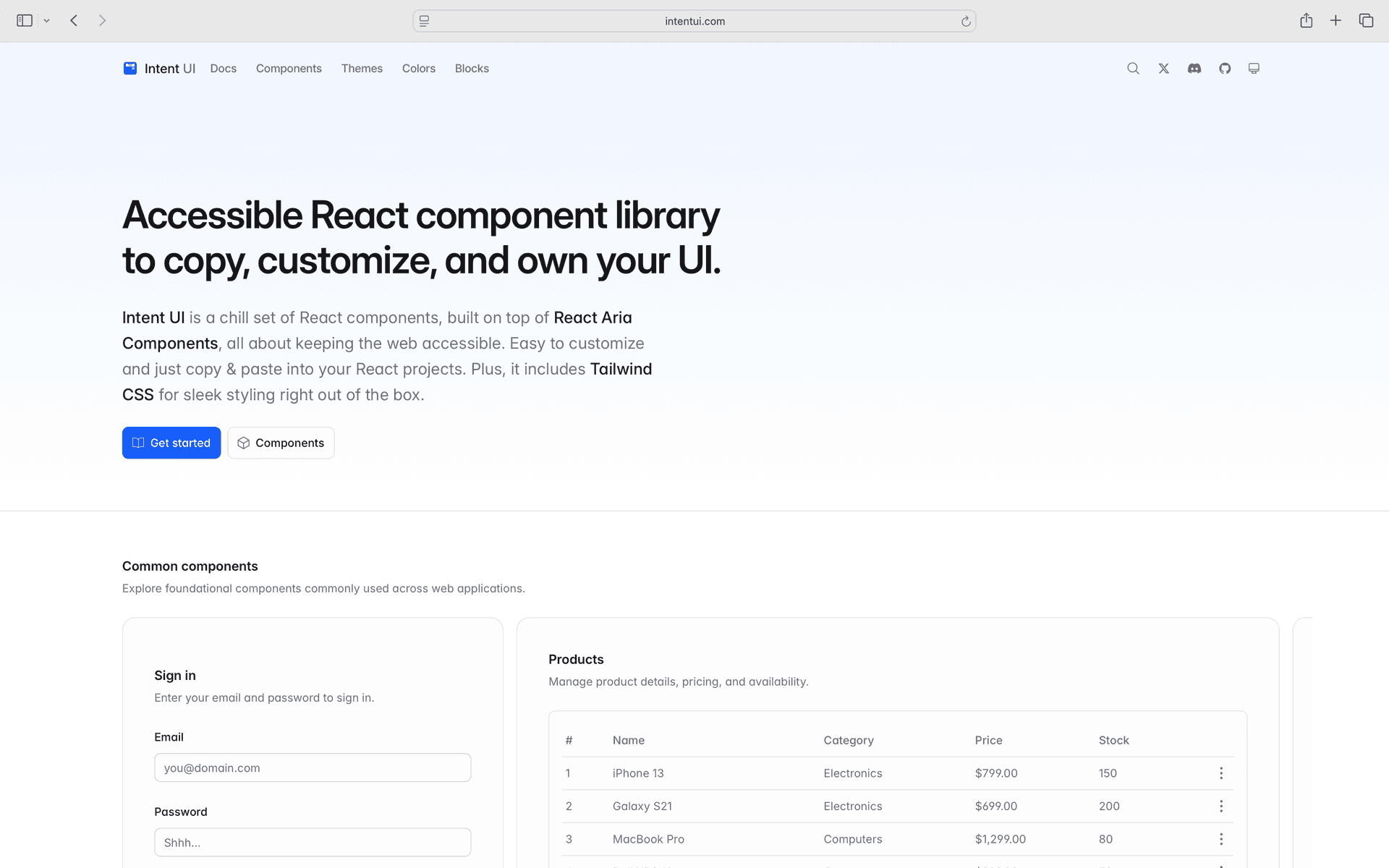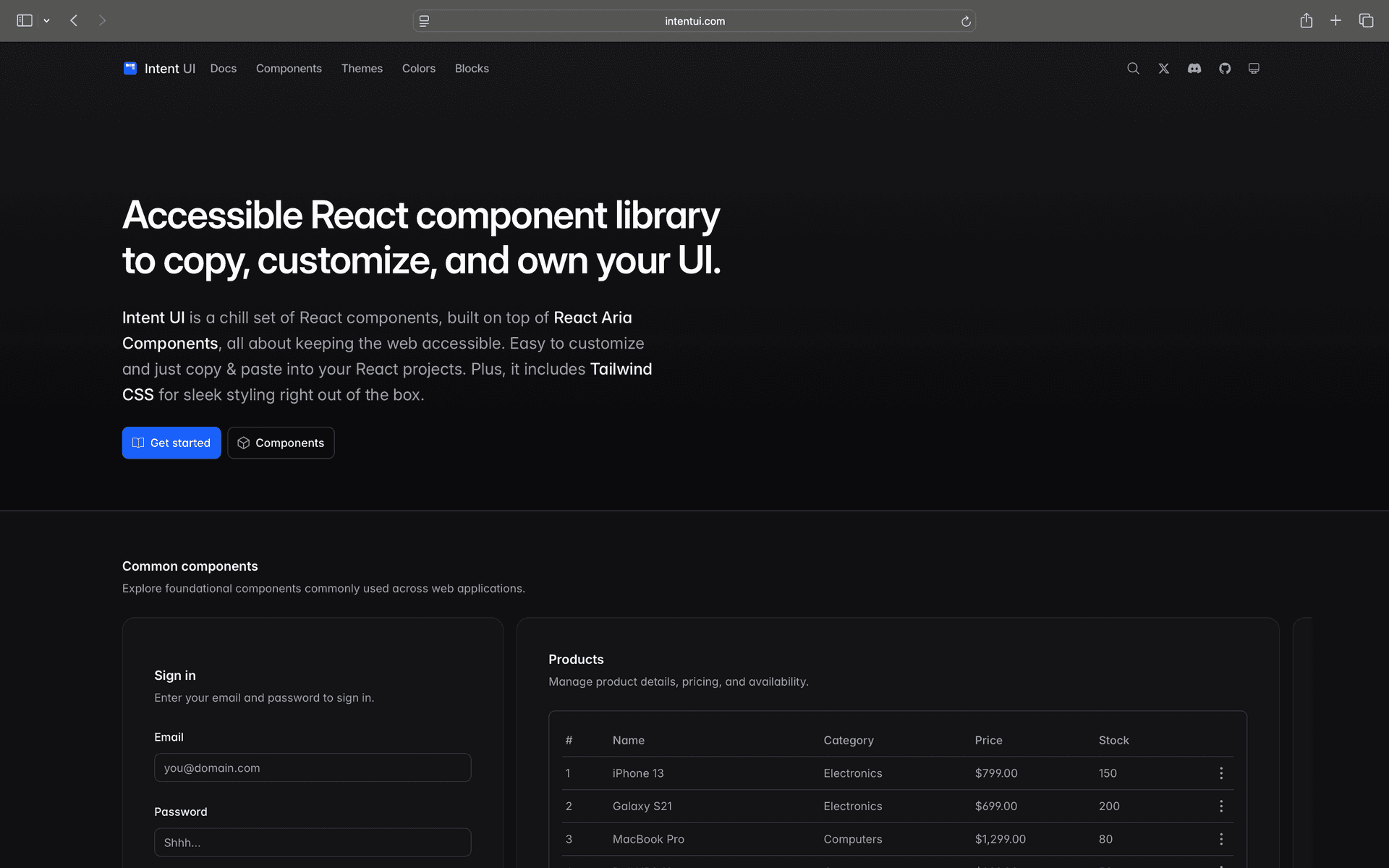Intent UI is an accessible, copy-and-paste friendly set of React components built on top of React Aria Components, with TailwindCSS baked in for clean, customizable styling. It’s designed to make building accessible, well-styled interfaces fast, simple, and developer friendly.