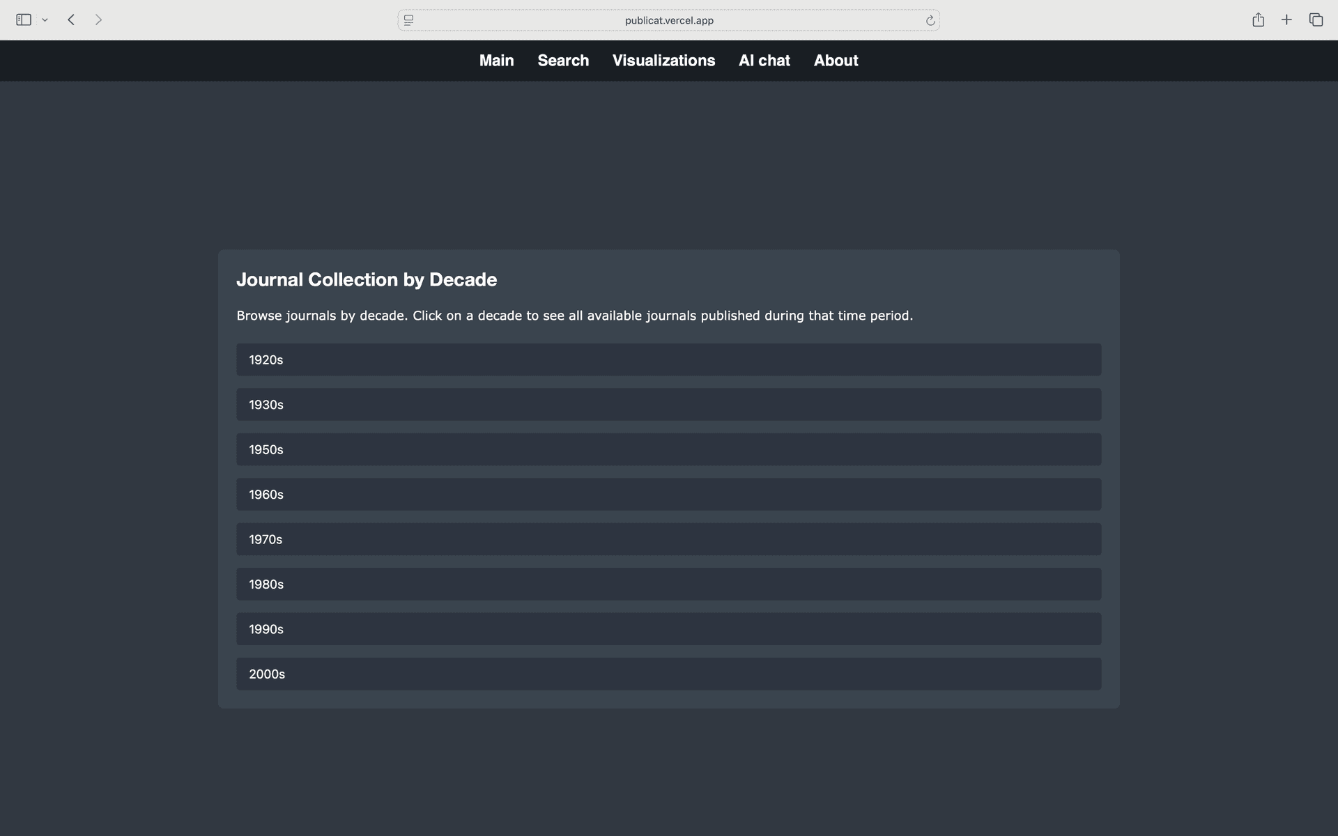 Publicat is a plug-and-play open-source tool that turns any CSV bibliography into an interactive journal explorer with timelines and visualizations, built specifically for humanities researchers without web-development resources. Featured in Stanford’s Open Source Project Registry and used by research groups across multiple countries, it brings accessible, humanities-focused digital tools to scholars who traditionally lack the technical or institutional support to publish their datasets online.