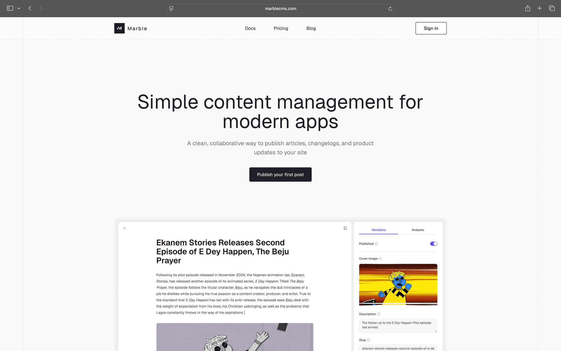Marble is a simple, flexible headless CMS built to give non-technical users and developers an easy way to manage content without heavy tooling. Since launch, it has grown to 480+ signups, 20 contributors, several sponsor partnerships, early YC-backed adopters, and its first paying users.