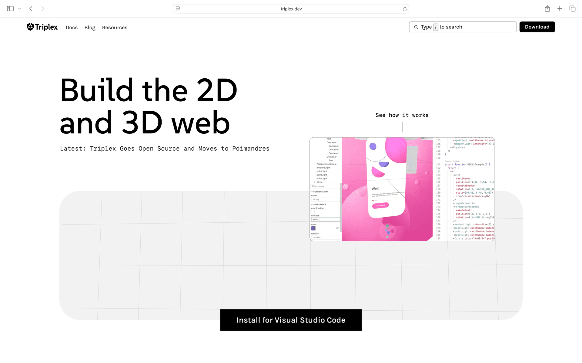 Triplex is a newly open-sourced framework that lets developers visually explore and edit anything built as a React component, seamlessly bridging 2D and 3D in a way no other tool offers. It’s already used by a few hundred people each week and is gaining attention for its unique, exciting approach to interactive UI development.