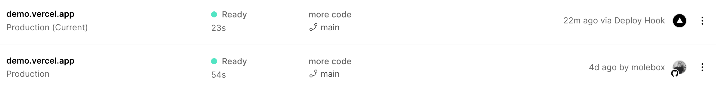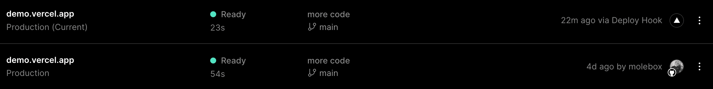 After sending a request, you can see that it triggered a deployment on your project dashboard.