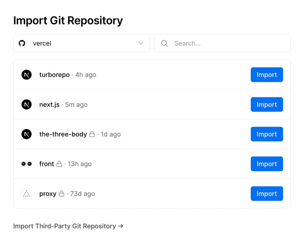 Setting up your GitHub, GitLab, or Bitbucket repository on Vercel is only a matter of clicking the "New Project" button on the top right of your dashboard and following the steps.