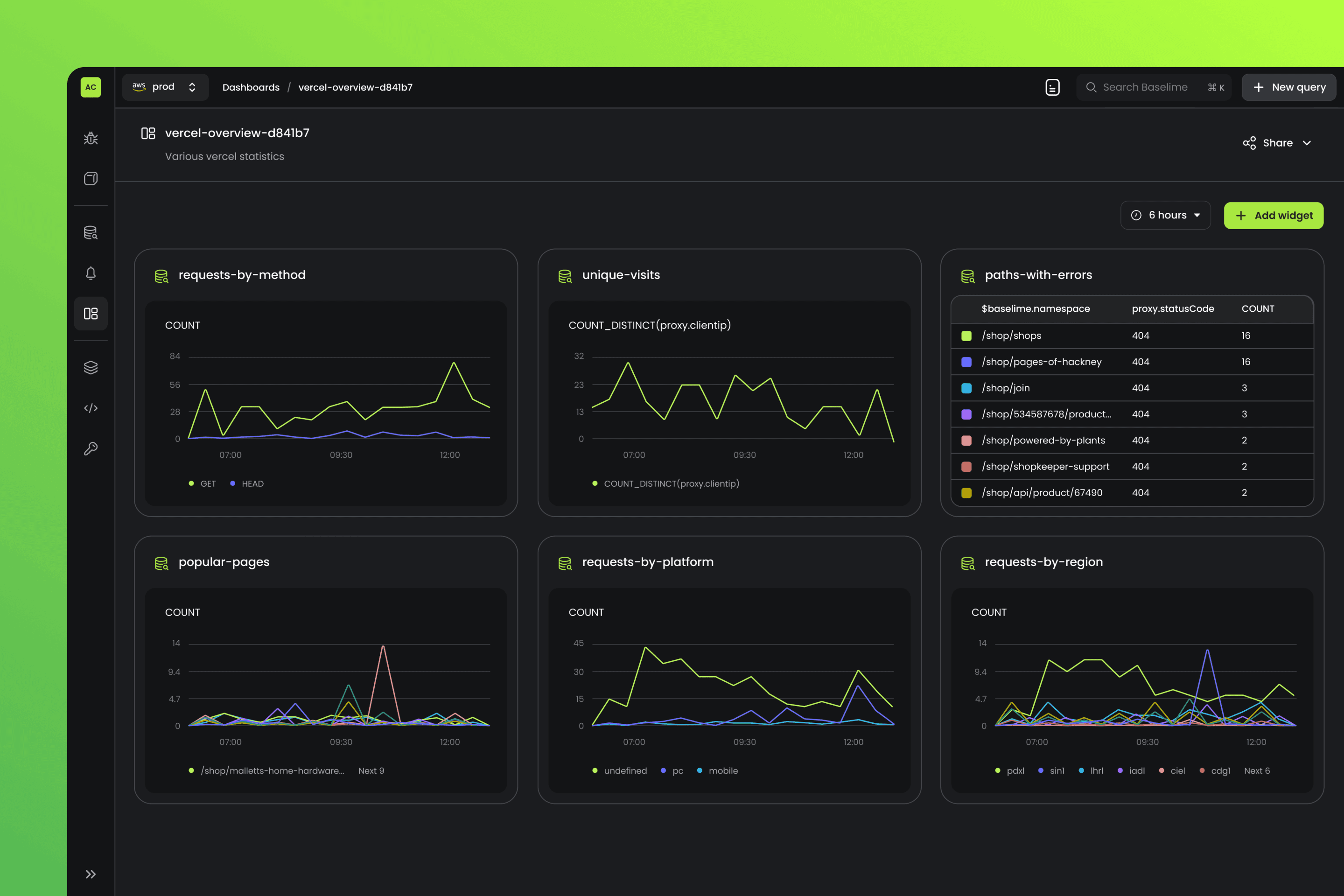 Does Baselime have a standard Vercel dashboard?