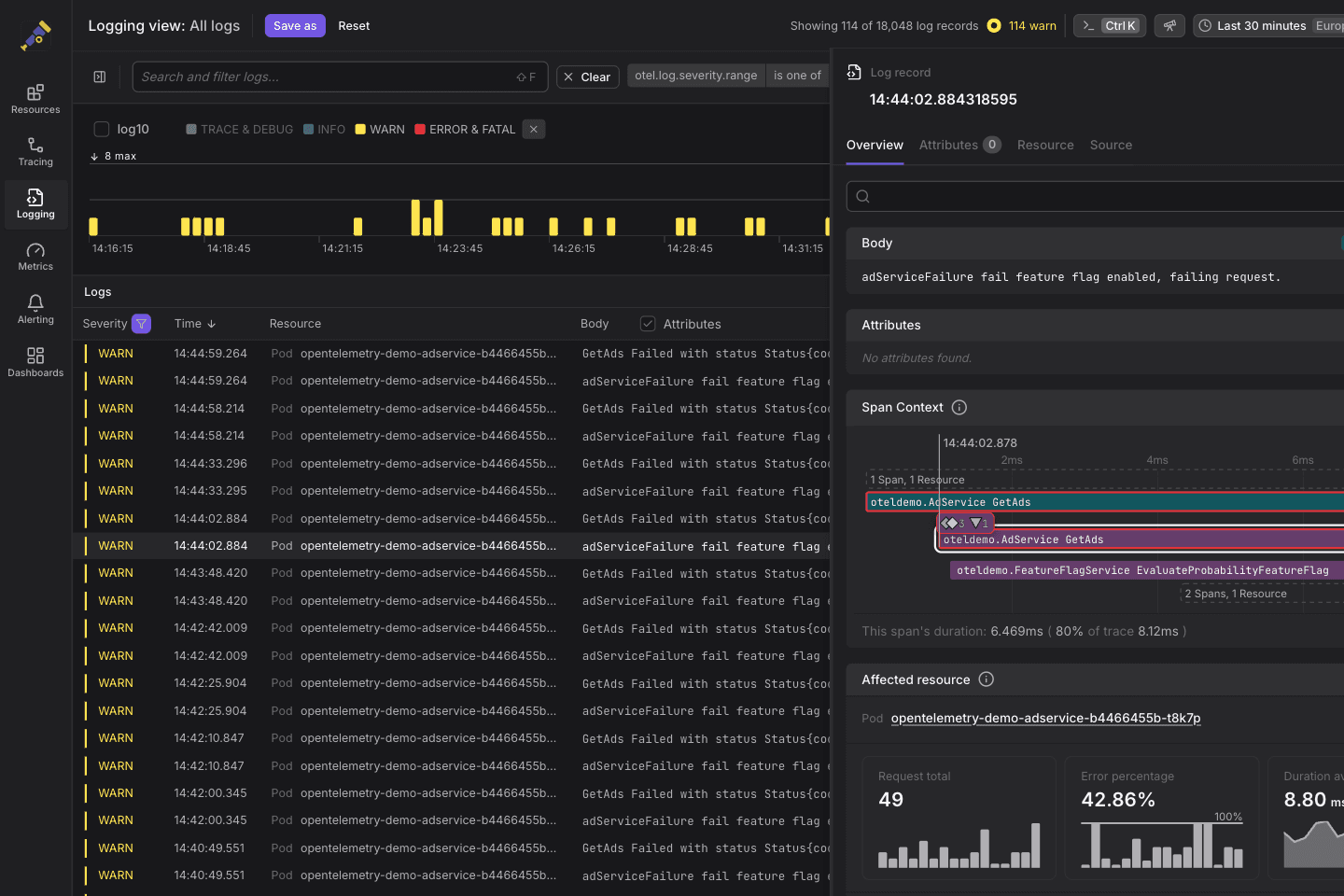 You will be able to analyze your Vercel telemetry in context with signals from your non-Vercel infrastructure. Get detailed insights and find the root cause for performance issues faster and easier than ever before.