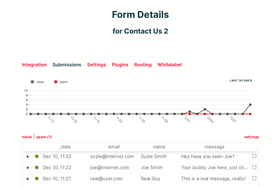 Formspree is the fastest way to collect form submissions for your Vercel site. Formspree provides: