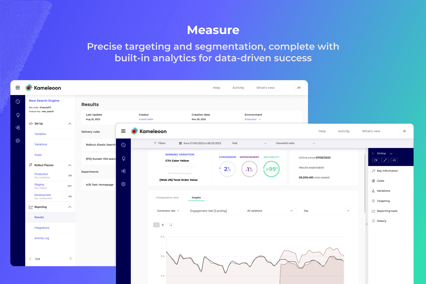 Launch your releases safely and confidently, combined with the agility of real-time feature updates using Vercel’s zero latency storage to ensure all flag updates are instantly available to Kameleoon SDKs within the Vercel network. This integration optimizes performance, eliminates stale user experiences, and keeps your data consistently up-to-date.