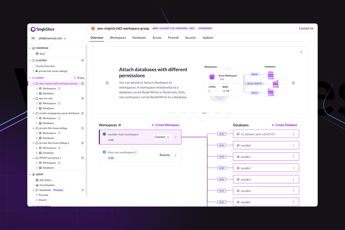 SingleStoreDB is a scalable cloud database for data-intensive applications, and it can be hosted on AWS, Azure or GCP. Its engine can successfully handle operational and analytical workloads at the same time.