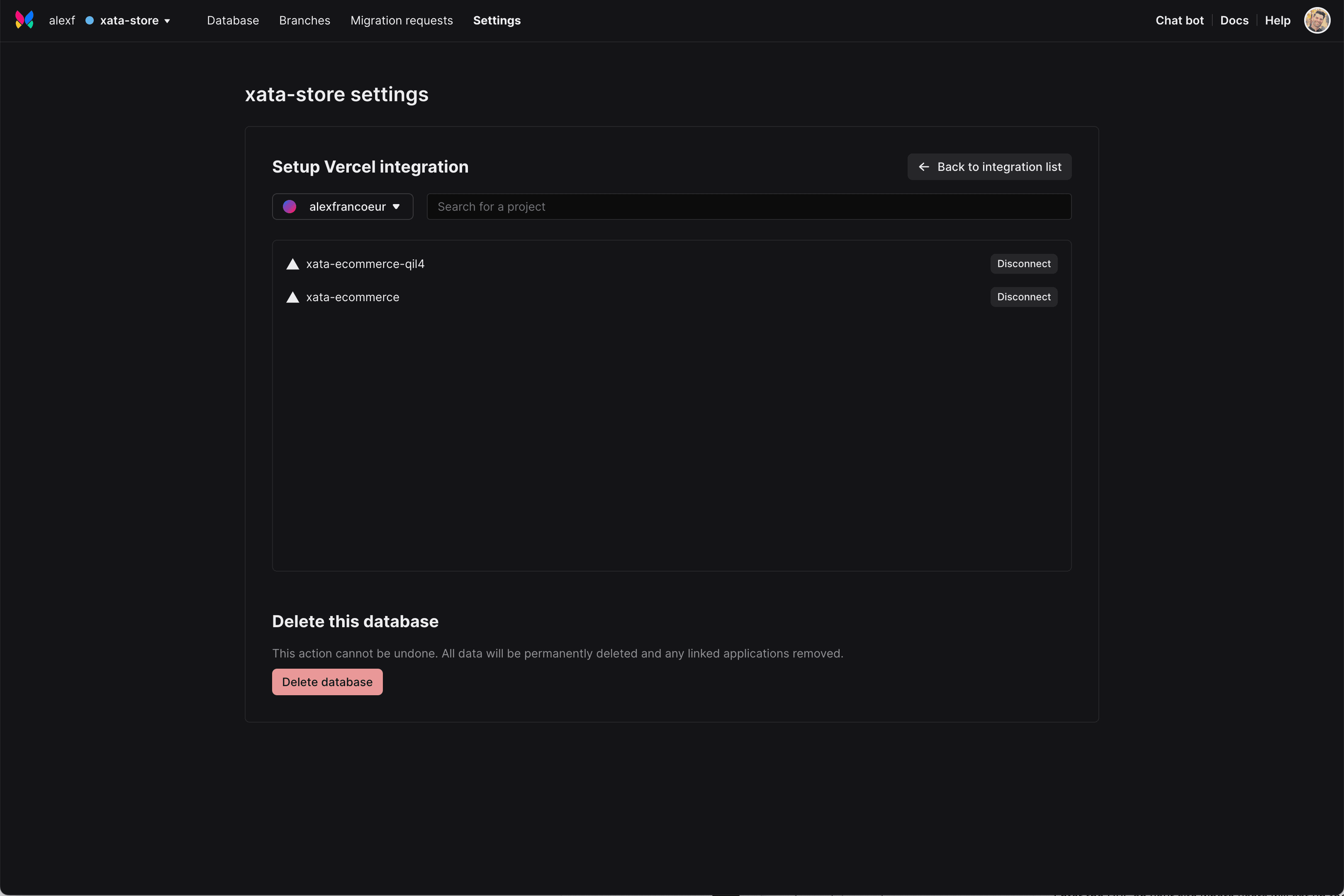 This integration connects to your Xata database and sets the environment variables in your Vercel project.